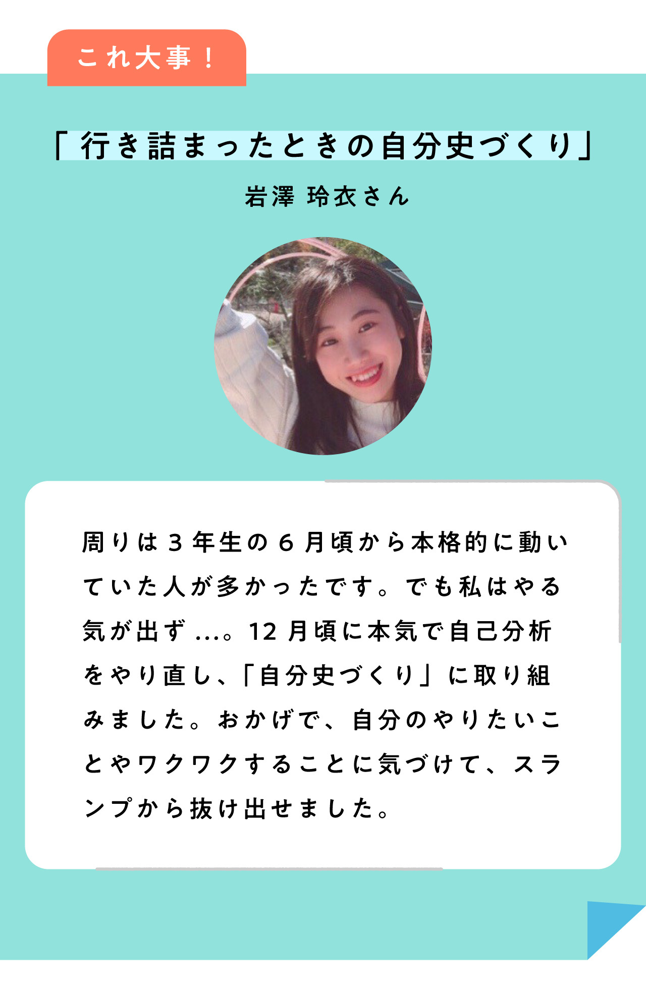 岩澤 3年生の12月頃です。モチベーションが上がらないまま、「ゆる就活期」を続けているうちに、自分が何をしたいのかとうとう分からなくなってしまったんです。