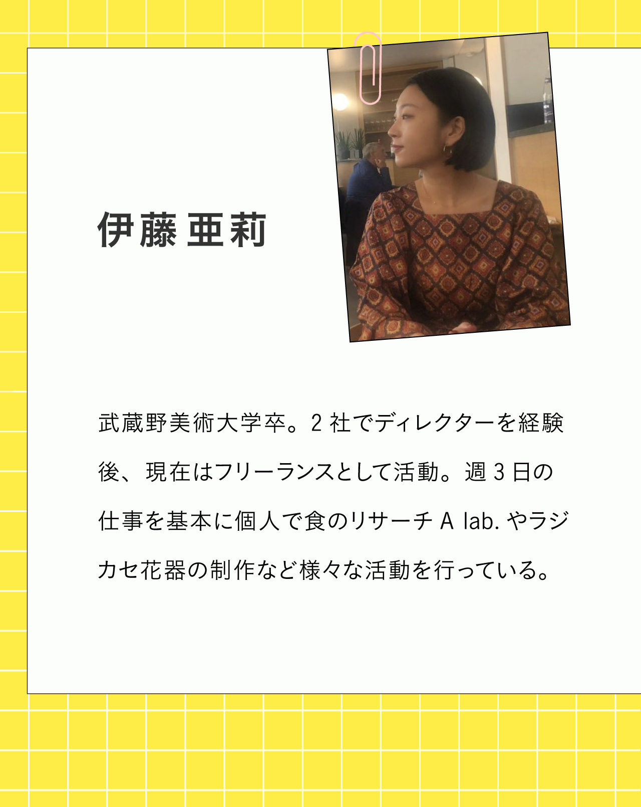 伊藤:自分のからだとこころに向き合う食の研究所「A Lab.」というプロジェクトを立ち上げました。海外ではパリやスウェーデン、国内では富山や金沢、長野、京都、福岡などに足を運んでいまして、現地で食べたり調べたりした情報をSNSで発信しながら、研究の構想を練っています。ゆくゆくは本を作ろうかなと。