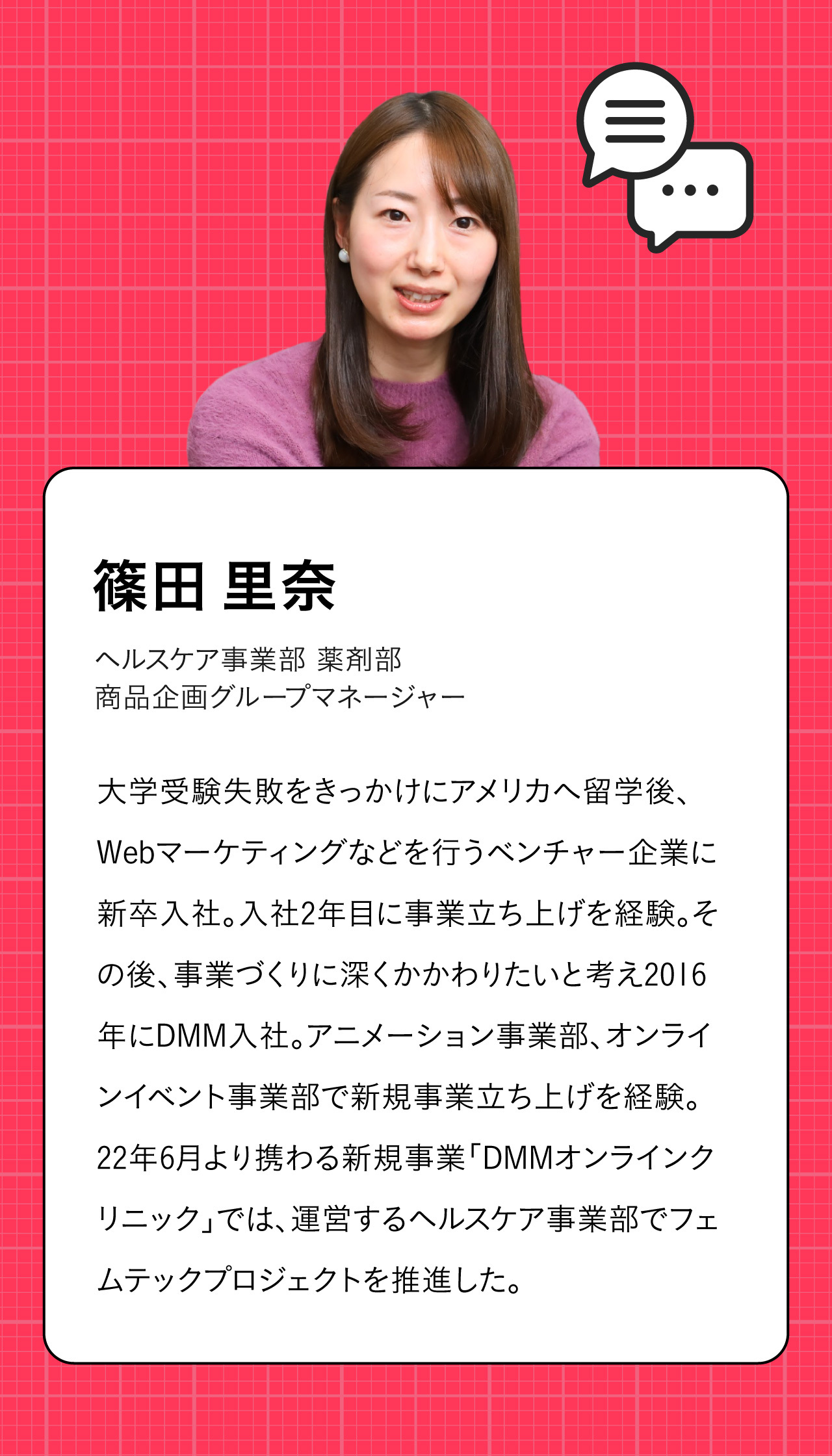 篠田:DMMオンラインクリニックの例で言うと、私が主導して「フェムテックプロジェクト」を立ち上げたことがありました。