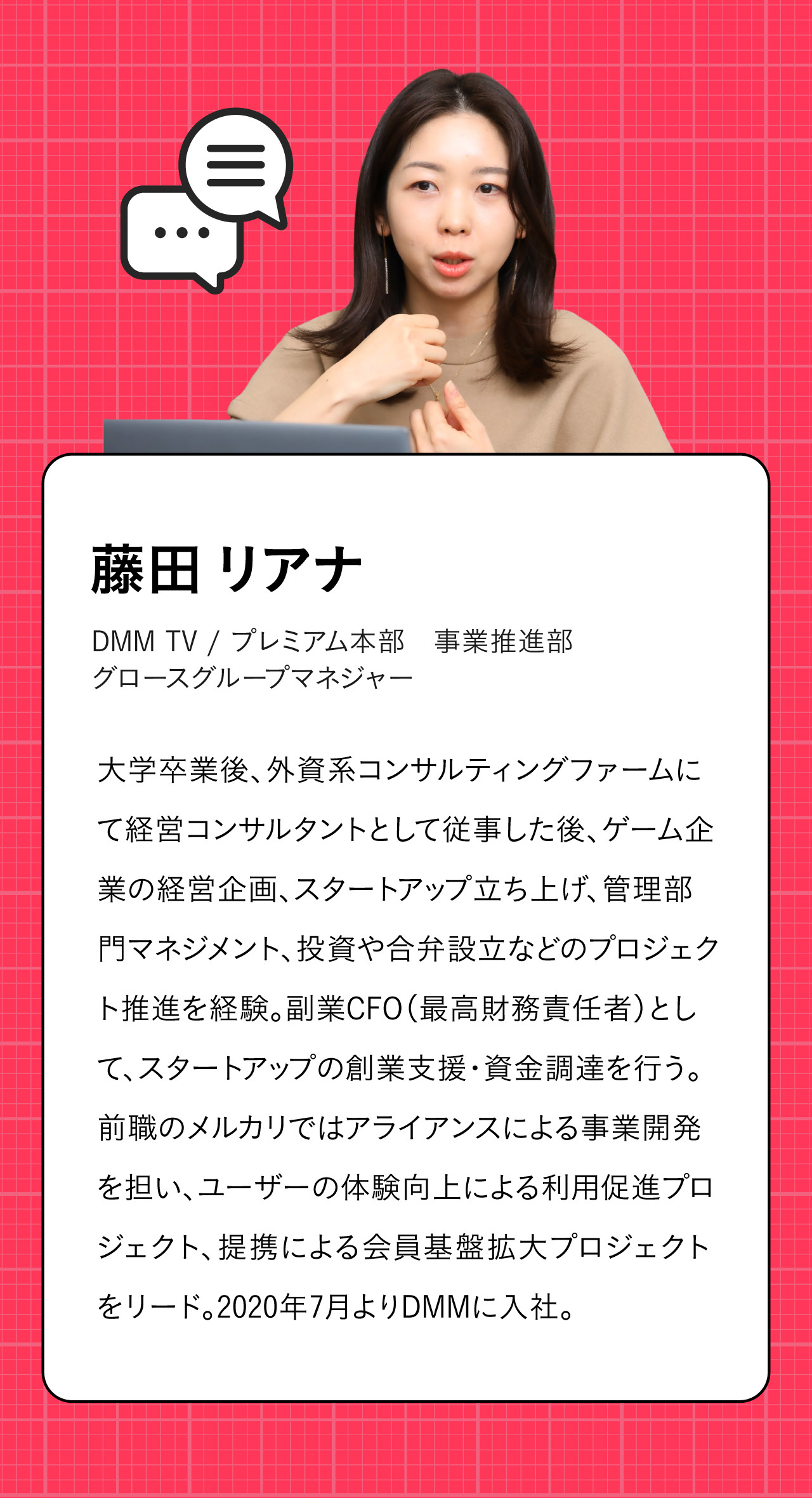 藤田:私は2人と違って、DMMに入社した当時は投資企画室のメンバーとして働いていました。いわゆる経営企画職の一つです。