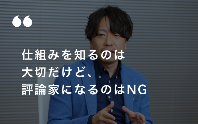 坂田:ただ、気をつけてほしいのは、仕組みを理解して評論家みたいになってはいけないということです。 事業開発は、結局「自ら手を動かす」ことが何よりも大切です。事業を推進する上で何か問題があった時、問題だけ指摘しても意味がないですからね。