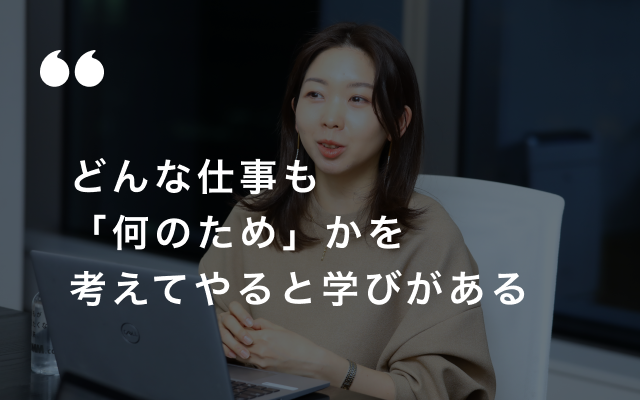例えば定例会議で使う資料のフォーマットを作るだけの仕事でも、これで本当にメンバー全員が見やすく管理しやすいフォーマットになっているか、最終的に何を求められてるかを考えた上で、アウトプットに落としていく。