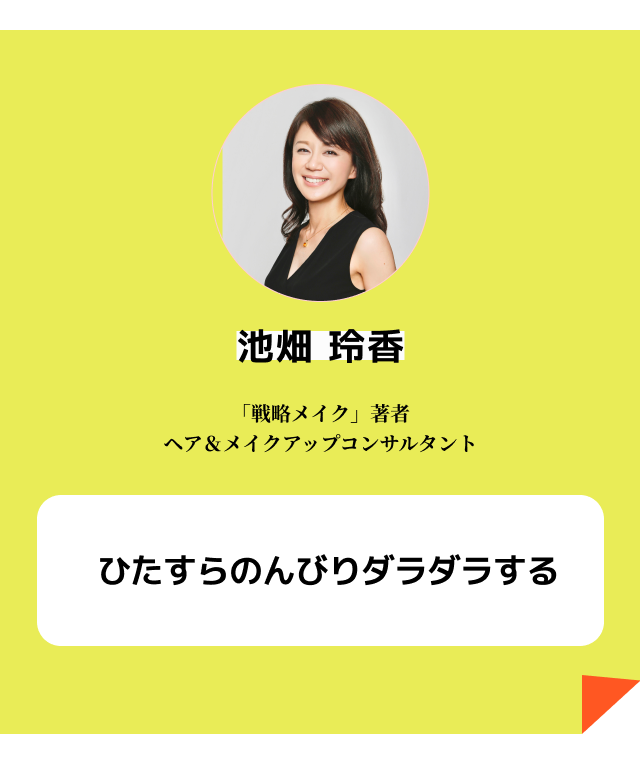 「戦略メイク 自分の顔は自分でつくる」(BOW BOOKS)の著者で、ヘア&メイクアップコンサルタントの池畑玲香さんも「ひたすらのんびりダラダラしよう」と呼びかけます。
