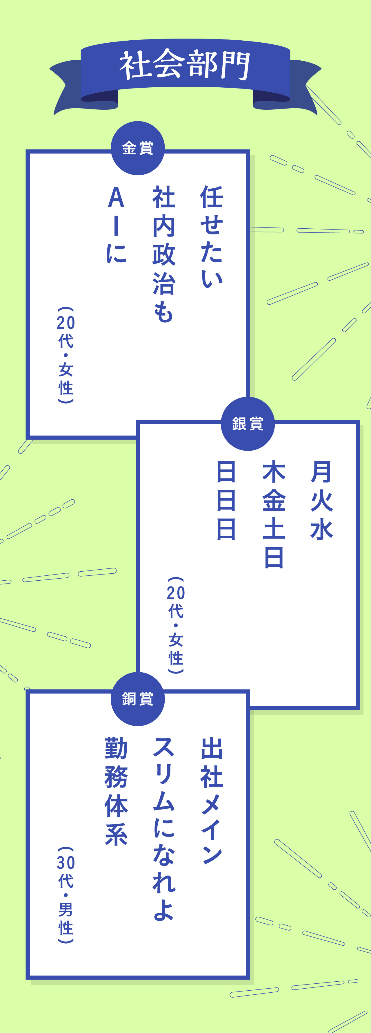 社会部門の受賞作には「生成AI」や「週休3日」、「出社回帰」のキーワードが入っています。