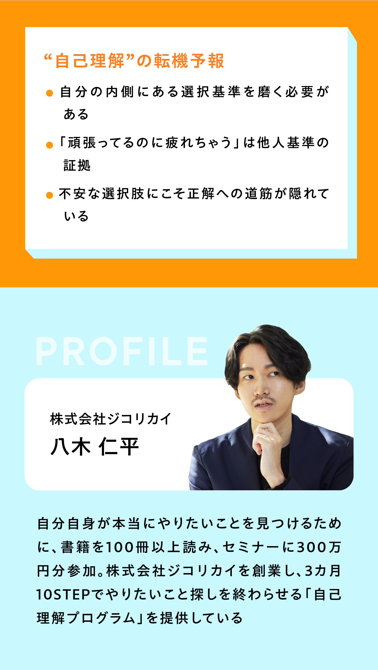 逆に言うと、自分のことを深く理解すれば、本当にやりたいことや幸せの価値観がはっきり分かって、確実に良い人生になると思えたんです。その時の衝撃が、「自己理解」をテーマにした今の仕事につながっています。