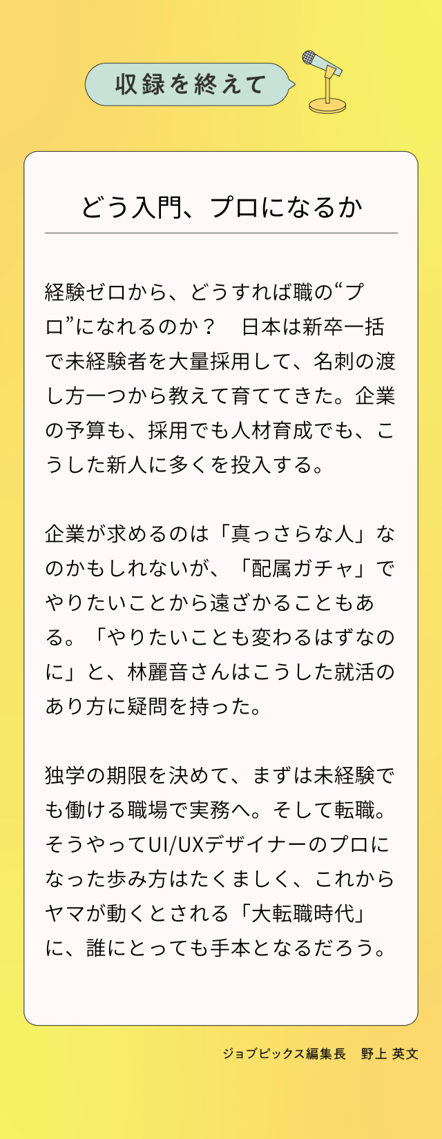 林:いえ、当時は「UI/UXデザイン」という言葉すら知らず、新卒で内定した素材メーカーで法人営業をしていました。