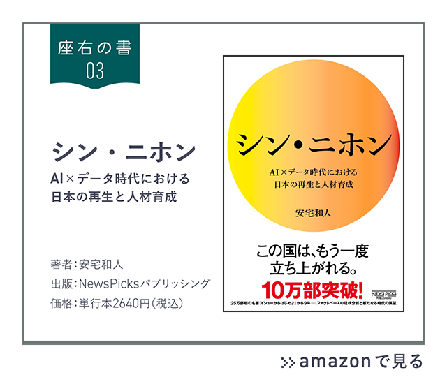 「私が自分の本で伝えたかったのは、普通のビジネスパーソンもAIを使いこなして社会を変えてほしい、そのためにはこれだけの知識を得てほしいという思いでした。ただ、『シン・ニホン』はもっと俯瞰的な視点かつ、国家戦略レベルでのデータ × AI活用を具体的に提言していて、視座の高さに感服しました」