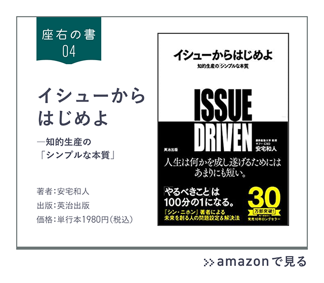 その前提で、これから社会に出る学生や、若手ビジネスパーソンへの推薦書を聞いたところ、安宅氏の別の著書『イシューからはじめよ』を挙げてくれた。