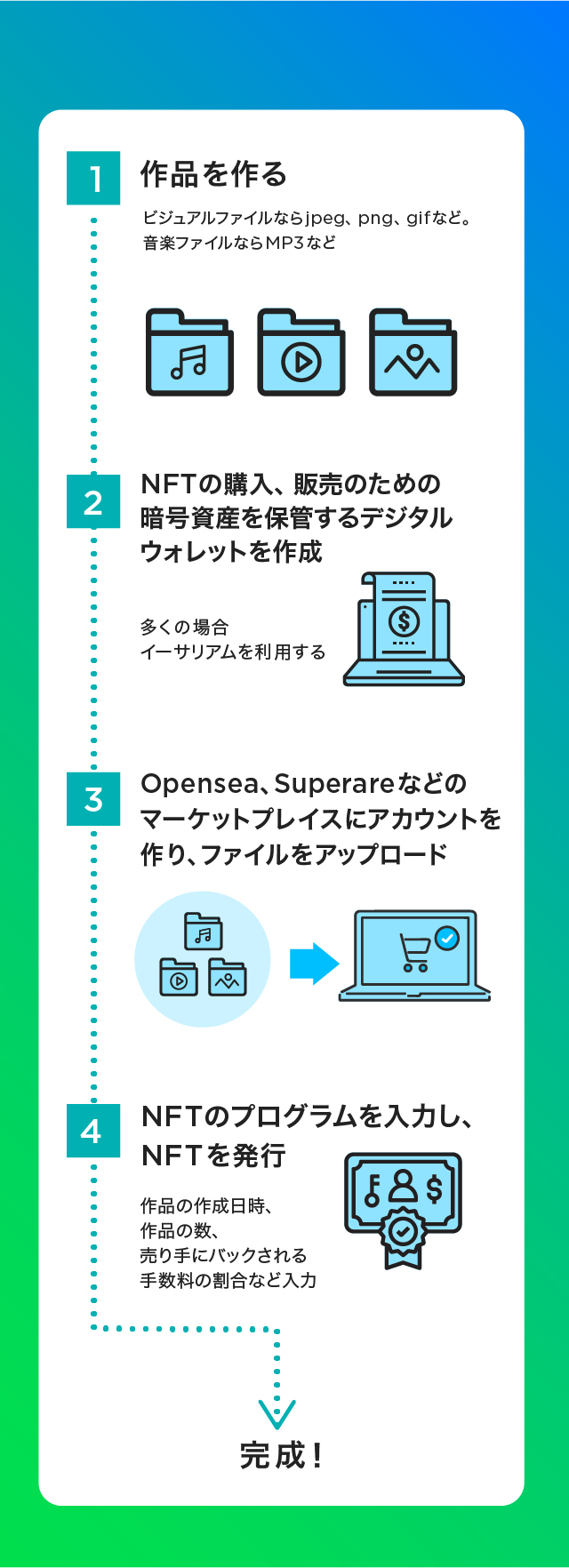 ブロックチェーン上で発行・取引されるNFTを用いれば、インターネットで楽曲やデジタルアートなどを売買する時、コピーできない「唯一性」を担保する鑑定書・所有証明書を付けてやりとりできる。
