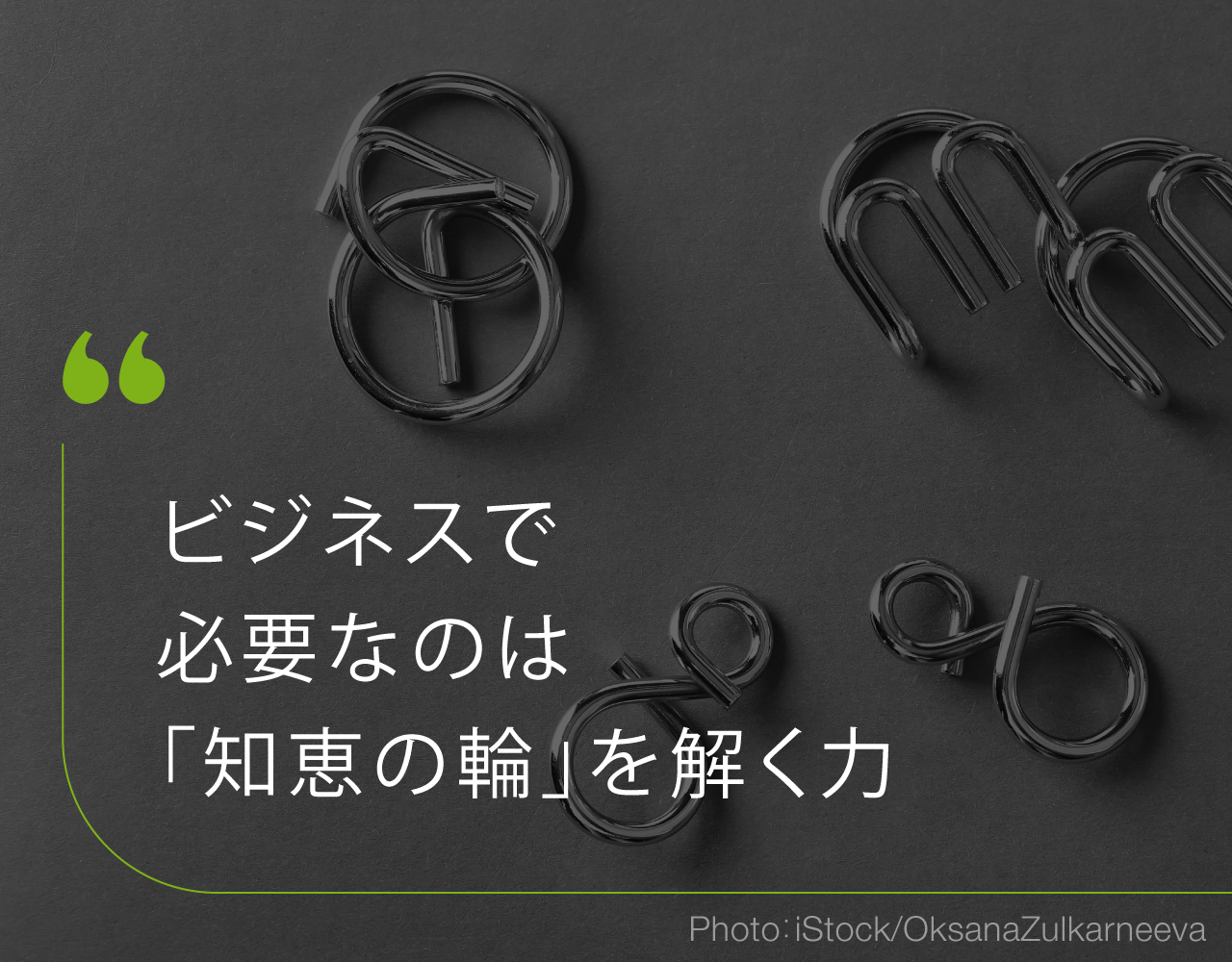 例えるなら、ビジネスで必要な能力とは「知恵の輪を解く」ための能力と同じ。論理や分析と、試行錯誤によって得る実践力が両方必要です。