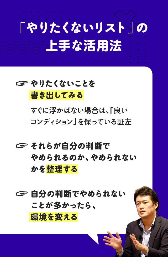 佐藤 やりたくないリストを作る行為は、キャリア形成の持続可能性をチェックすることにもつながるのですね。
