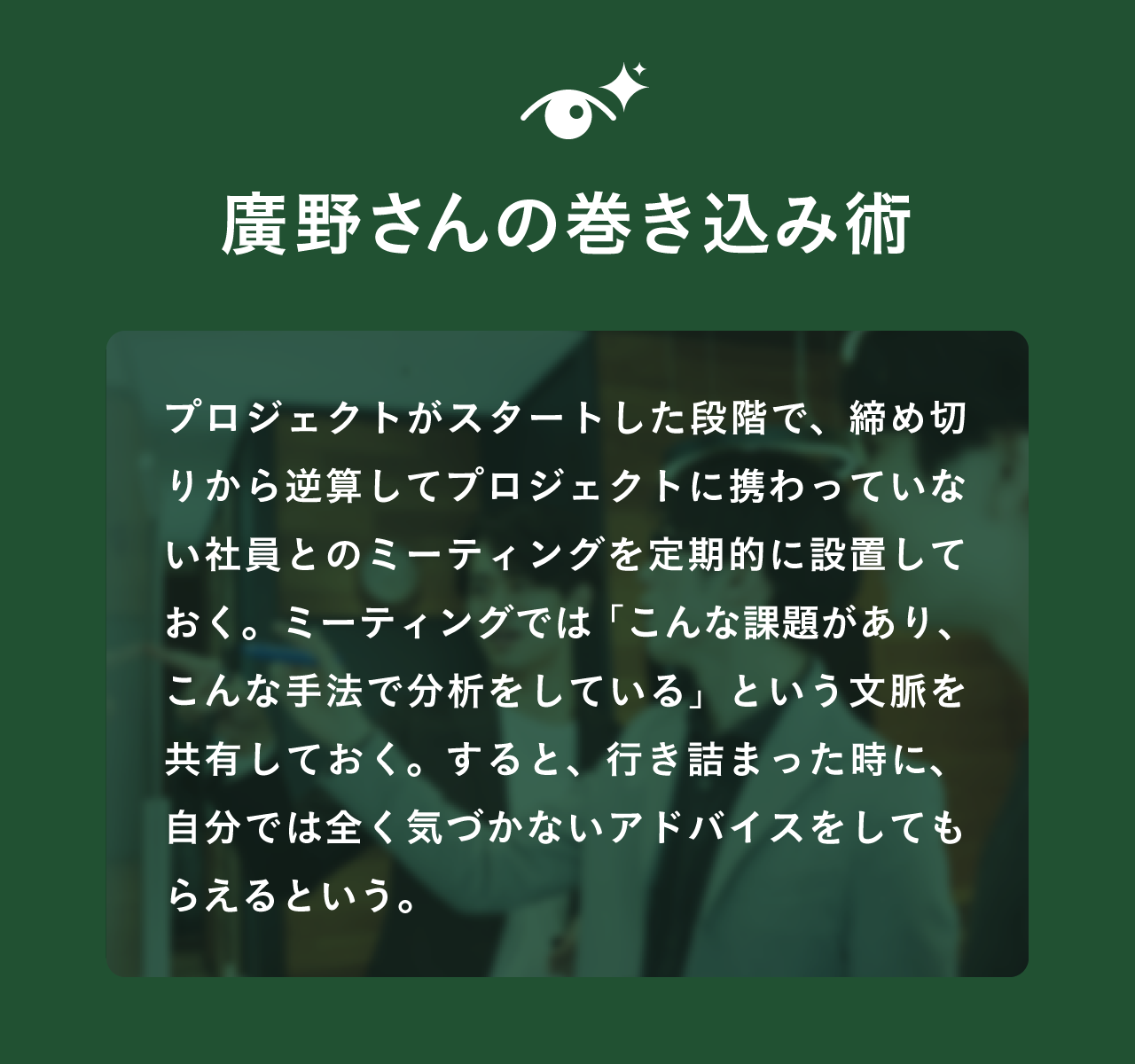 —— 「巻き込み力」は実際の業務でどのように生きてくるのでしょうか?